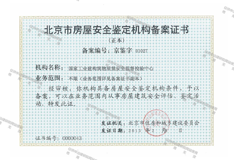 北京市房屋安全鑒定機構備案證書